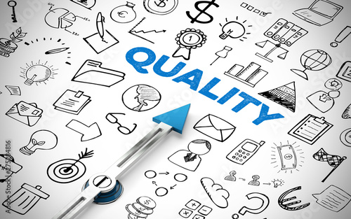 Pfeil zeigt auf das Wort Quality (Qualität)