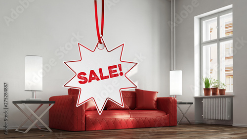 Wand im Zimmer einer leeren Wohnung mit Balkon