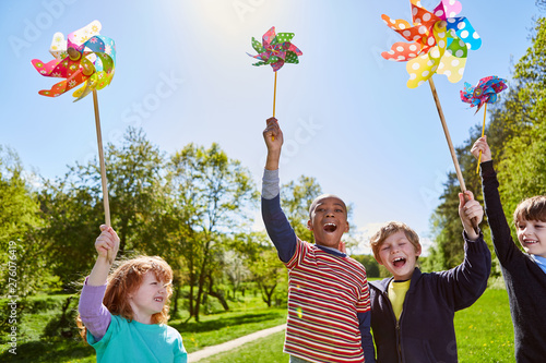 Zwei jubelnde Kinder als Sieger mit einem Ball