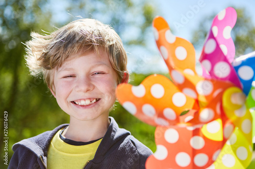 Portrait of a cheerful young boy enjoying nature on a sunny day