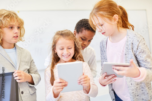 Gruppe Kinder in Grundschule mit Tablet Computer