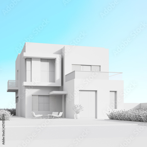 Beleuchtetes Einfamilienhaus mit Garten abends