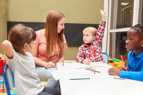 Malkurs in der Kindertagesstätte mit Erzieherin