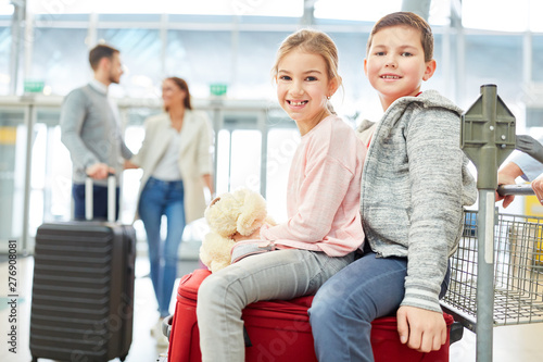 Kinder freuen sich auf den Flug in die Ferien