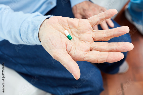 Pflegedienst Frau gibt einem Senior eine Tablette