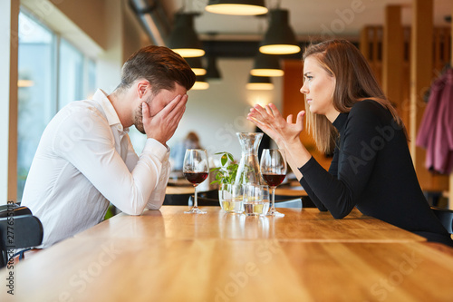 Paar beim Streiten und Diskutieren im Restaurant