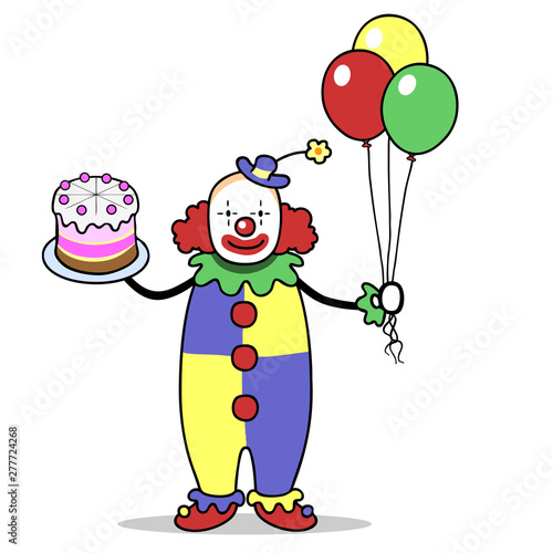 Clown hält Sparschwein hoch zu Karneval oder Fasching