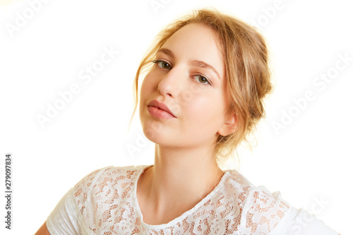 Junge Frau von der Seite als Ganzkörperaufnahme