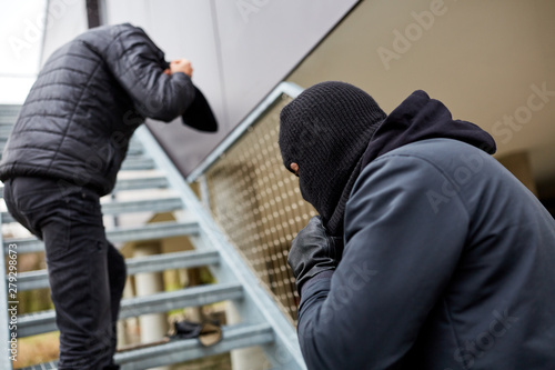 Einbrecher beobachten Fenster von Haus