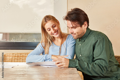 Junges Paar liest gemeinsam die Steuererklärung