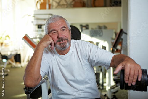 Bearded senior businessman talking on mobile phone while sitting in front of colleagues discussing at office