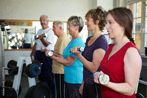 Gruppe trainiert im Fitnesscenter am Crosstrainer