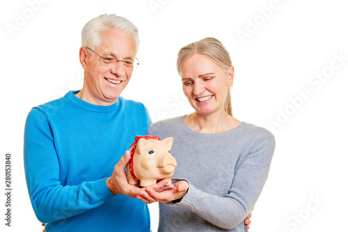 Senioren Paar mit Sparschwein als Altersvorsorge