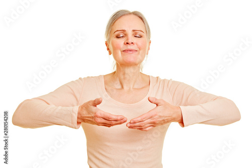 Ältere Frau beim bewusst einatmen