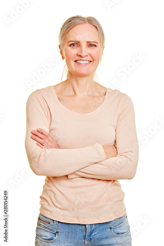 Lächelnde Seniorin mit verschränkten Armen