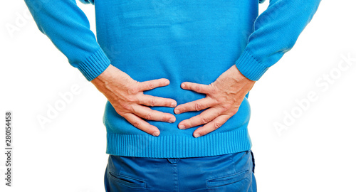 Mann mit Bauchschmerzen hält Hände auf Magen