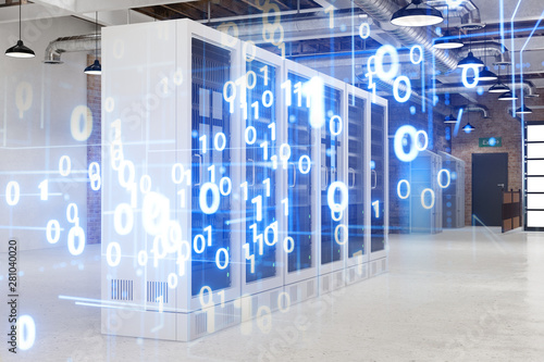 Serverraum im Rechenzentrum mit Binärzahlen