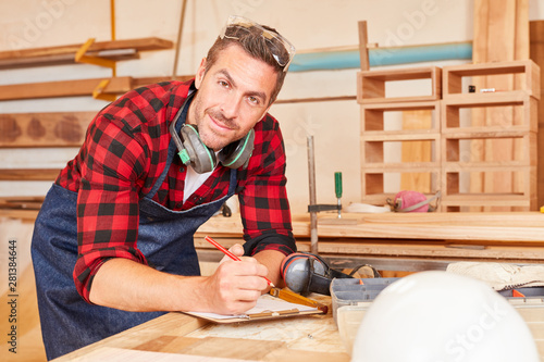 Mann als Schreiner mit Klemmbrett