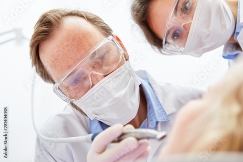 Zahnarzt Team mit Mundschutz bei der Behandlung