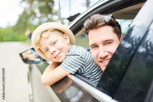 Vater und Sohn im Auto vor der Reise