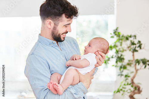 Proud father holds his newborn son