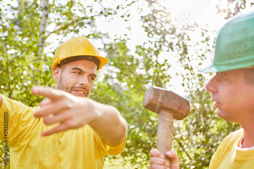 Gruppe beim gemeinsam Klettern im Kletterwald