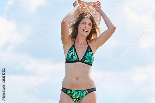 Radiant Australian girl with sun hat enjoying nature on a sunny day
