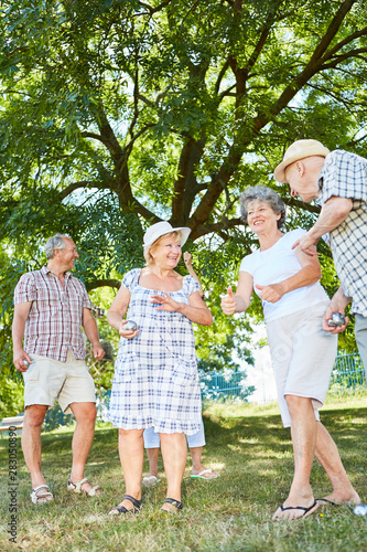 Cheerful seniors group playing boules