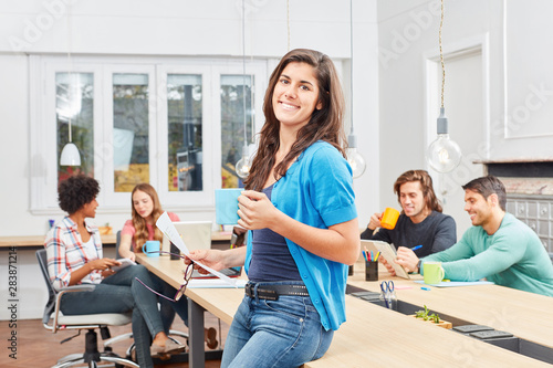 Erfolgreiche Geschäftsfrau vor ihrem Team