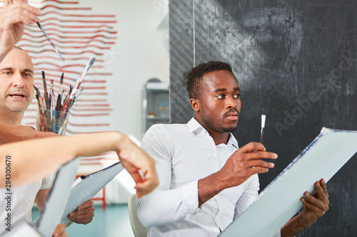 Junger Afrikaner als Kunststudent in einem Malkurs