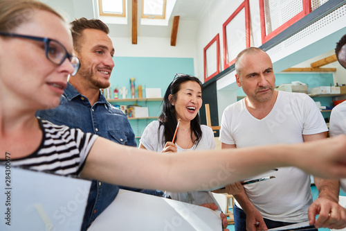 Gruppe Studenten jubelt nach bestandener Prüfung