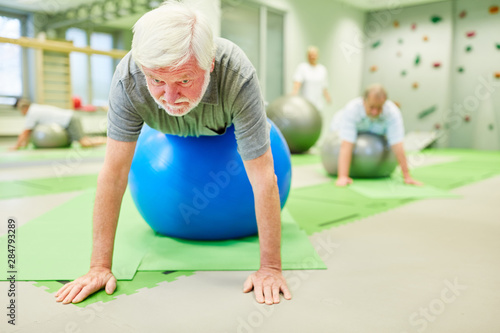 Gruppe Senioren beim Rehasport an der Ballettstange