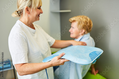 Heilpraktiker mit Senior Frau bei Magnetfeldtherapie