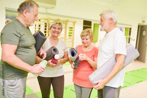 Gruppe Senioren mit Yogamatte im Fitnesscenter