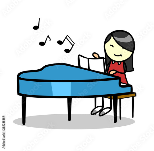 Asiatisches Mädchen spielt Klavier in Musikschule