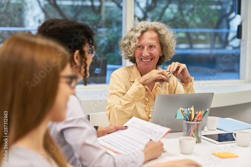 Senior Frau als Dozentin im Seminar für Weiterbildung