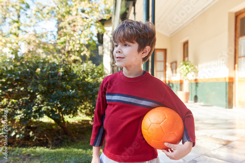 Schoolboy with a football during the holidays