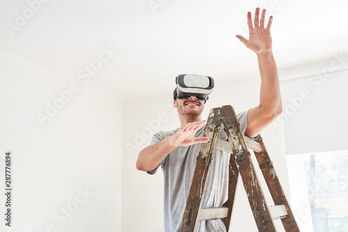 Mann mit Virtual Reality Brille bei Renovierung