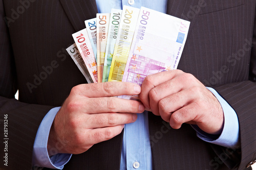 Hand mit Lupe sucht in Portraits als Umfrage und Marktforschung Konzept