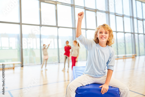 Mädchen in Schule steht vor Tafel mit Muskeln