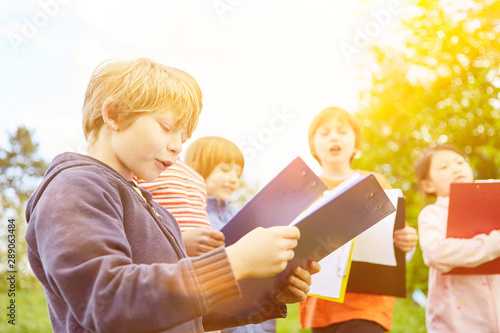 Children with clipboard at scavenger hunt