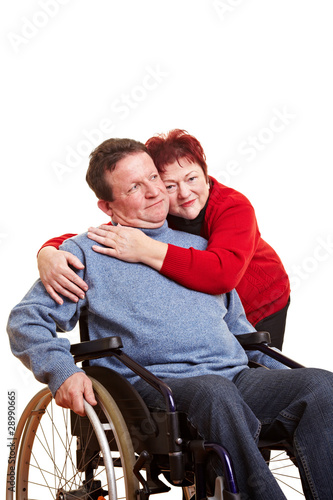 Ältere Frau im Rollstuhl mit jüngerer Frau