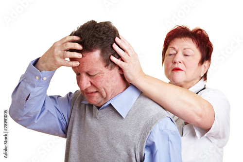 Ärztin untersucht Rückenschmerzen bei Patienten