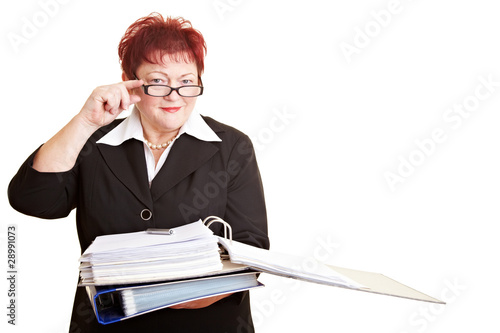 Senioren kontrollieren Rentenbescheid mit Lupe