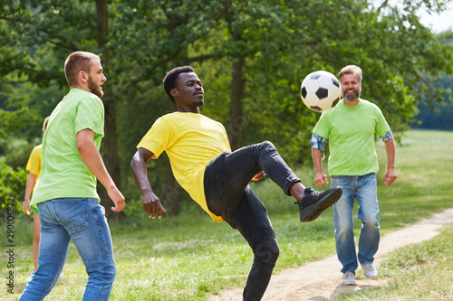 Gruppe spielt Fußball auf Teambuilding Workshop
