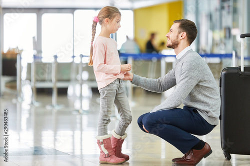 Vater und Tochter zusammen im Flughafen Terminal