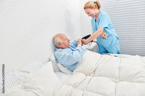 Altenpfleger kümmert sich im Hospiz um Seniorin