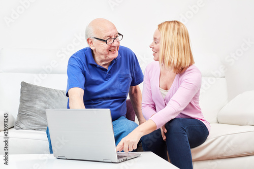 Sozialarbeiter zeigt Senioren Laptop Computer