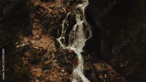 Powerful White Water River Flowing Through the Rocky Austrian Alps in Summer.