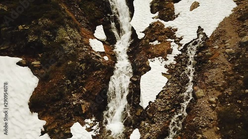 Powerful White Water River Flowing Through the Rocky Austrian Alps in Summer.